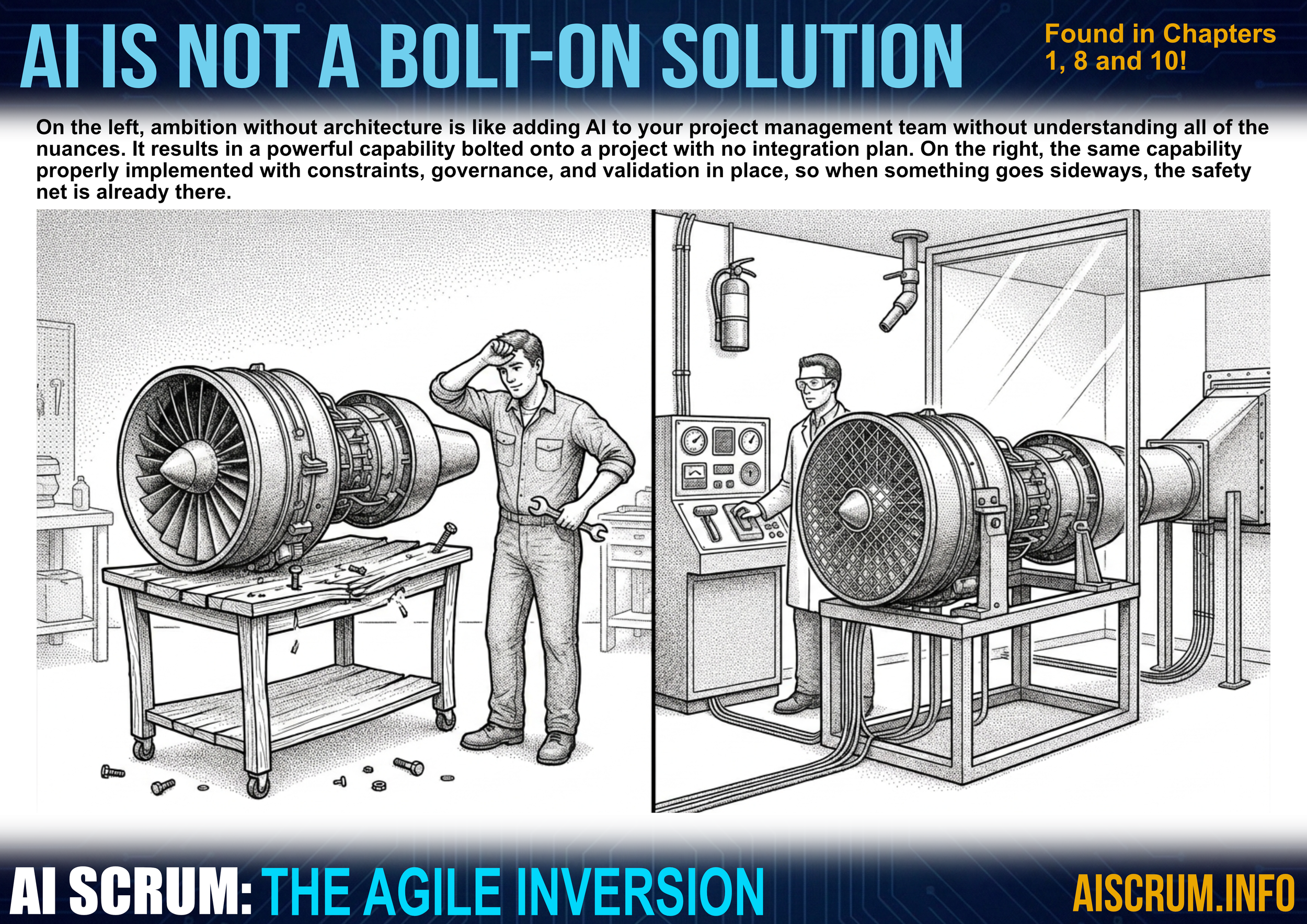 AI Scrum: The Agile Inversion was written for teams standing at this exact crossroads. Chapters 1, 8, and 10 walk through the validation, governance, and ethical frameworks that turn bolt-on ambition into sustainable, managed adoption. If your team is bringing AI into the workflow, this is the playbook.